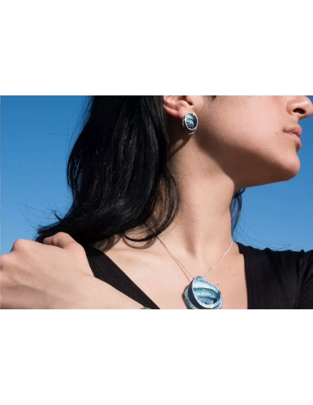 Pendientes Sinera Azul Formentera, realizados en plata de lei 925 con pigmentos de esmalte color azul.