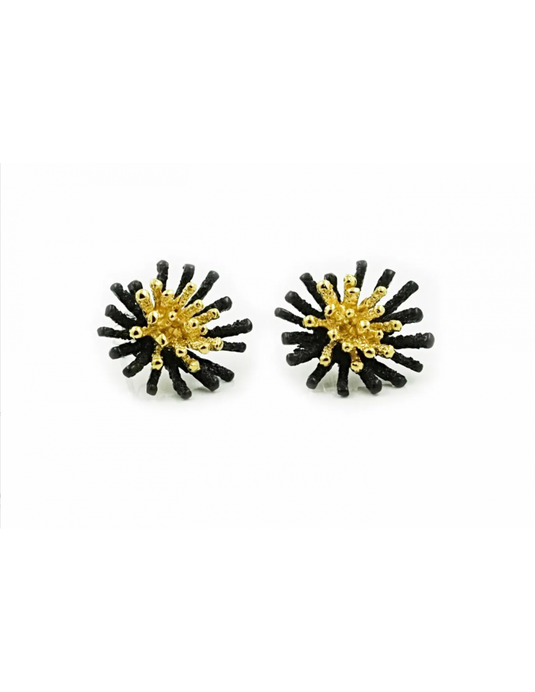 Pendientes "Espores" grandes GoldenBlack Premium, realizadas en plata de ley con baño de rodio negro y baño de oro amarillo 18 kilates