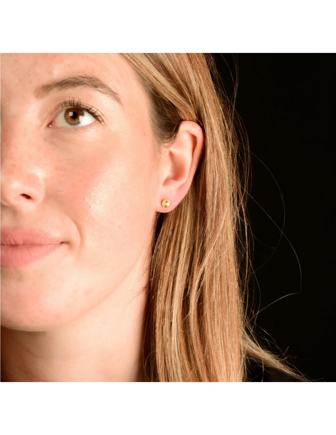 Pendientes bolitas en acero con baño en oro amarillo 18 quilates