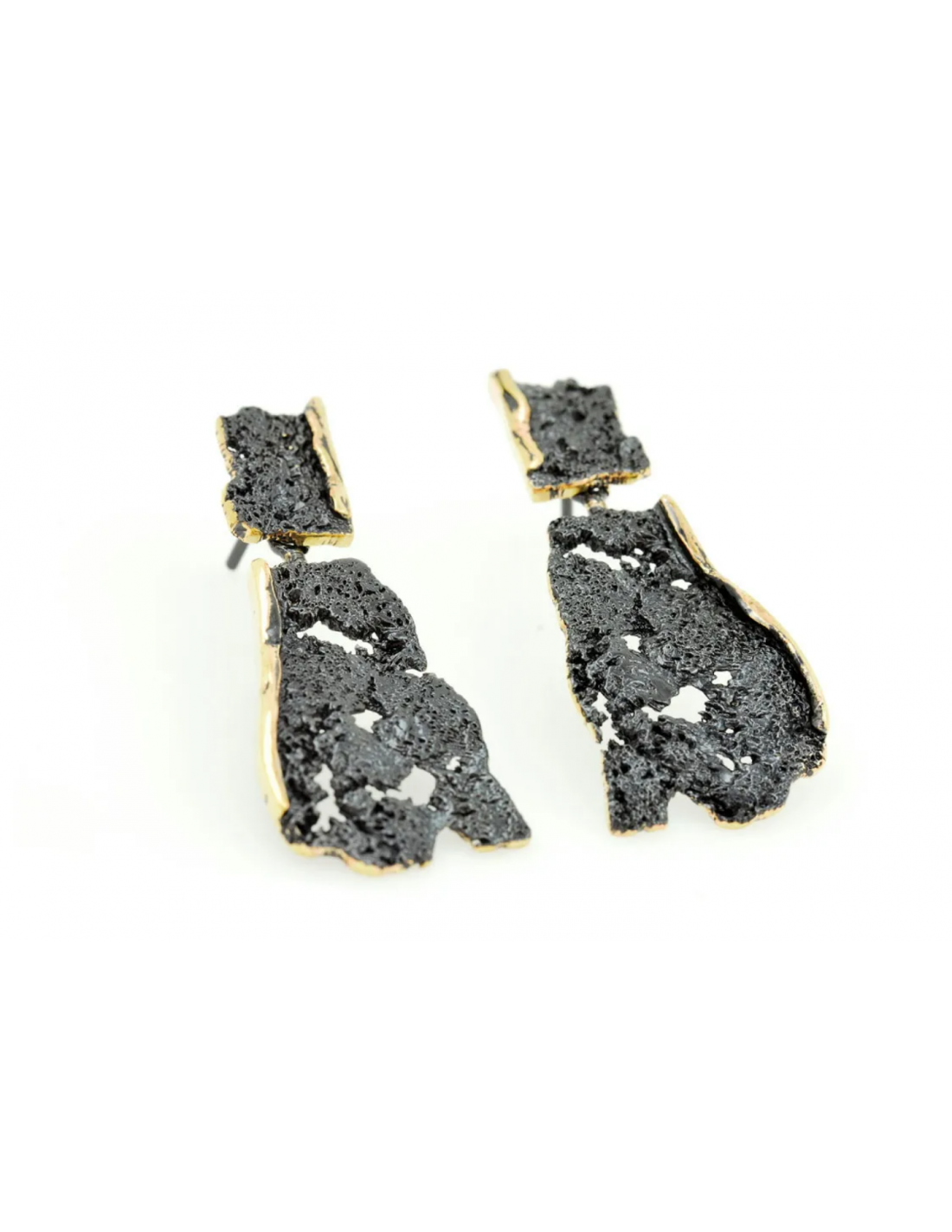 Pendientes en bronce de joyería acabado con un baño de oro de 18ct, baño de Rodio negro y un proceso final de recubrimiento nanocerámico.