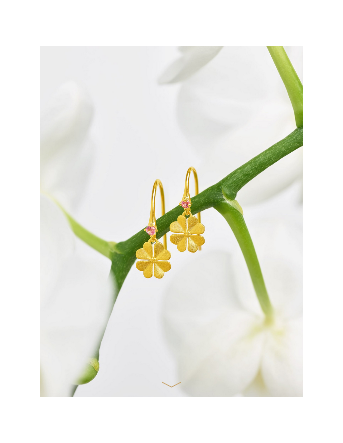Pendientes "Kleenias" de plata 925 con baño en oro 24 kt y turmalina rosa largos de gancho