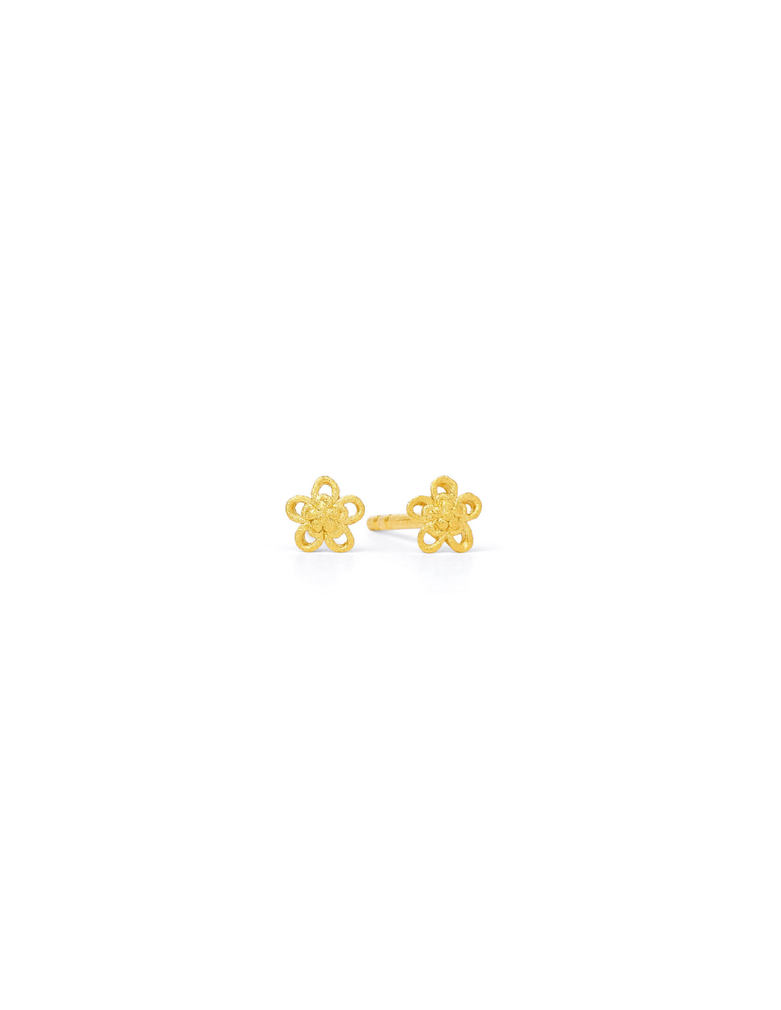 Estos pendientes de botón chapados en oro de 24 quilates lucen delicadas flores de 4,5 mm.Como pequeñas estrellas, las flores con sus pétalos calados de la línea de diseño Flowertime brillan, evocando imágenes de prados florecientes de verano.