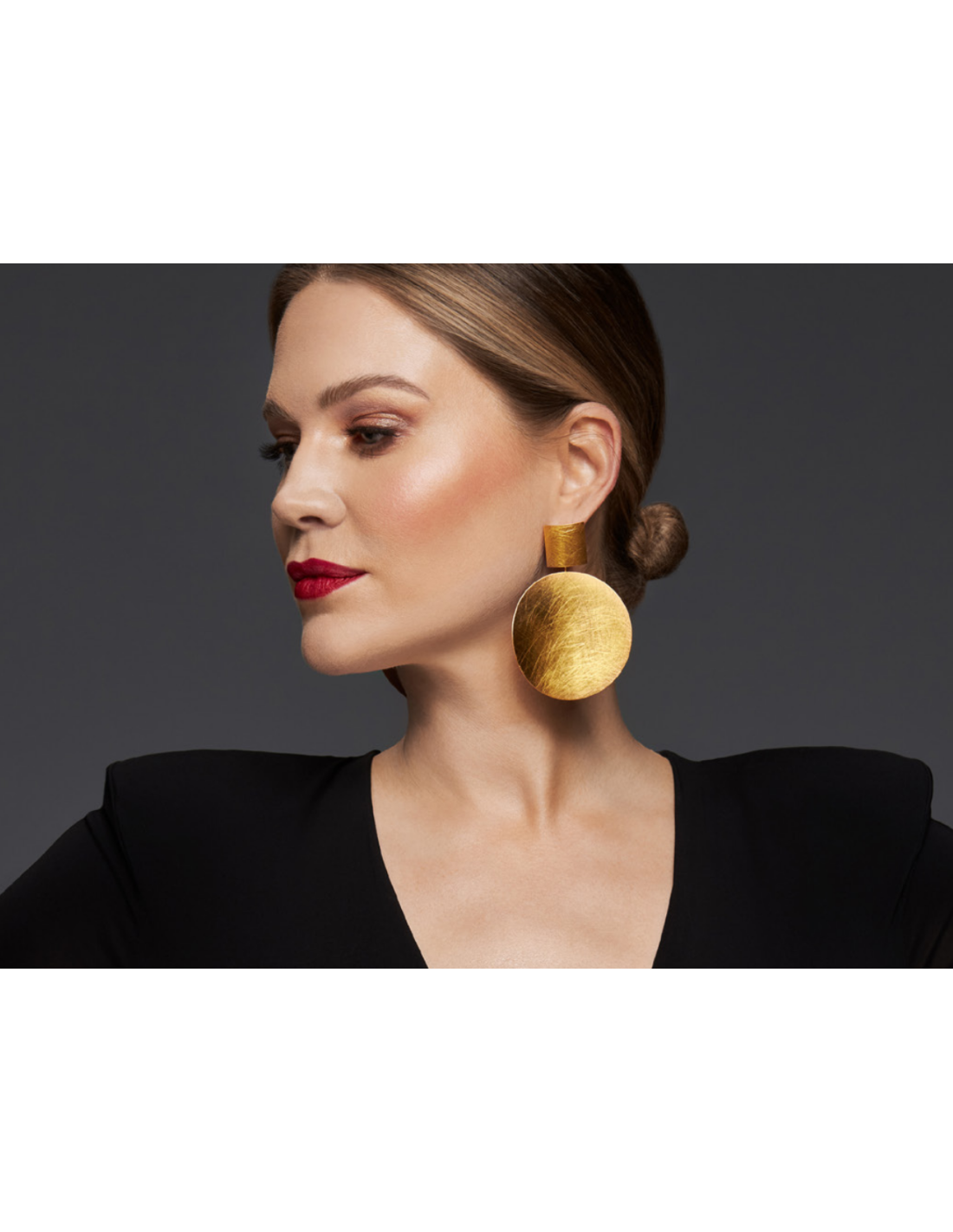 Pendientes Luna LLena Grandes K1688 en plata 925 con baño en oro amarillo 24 quilates