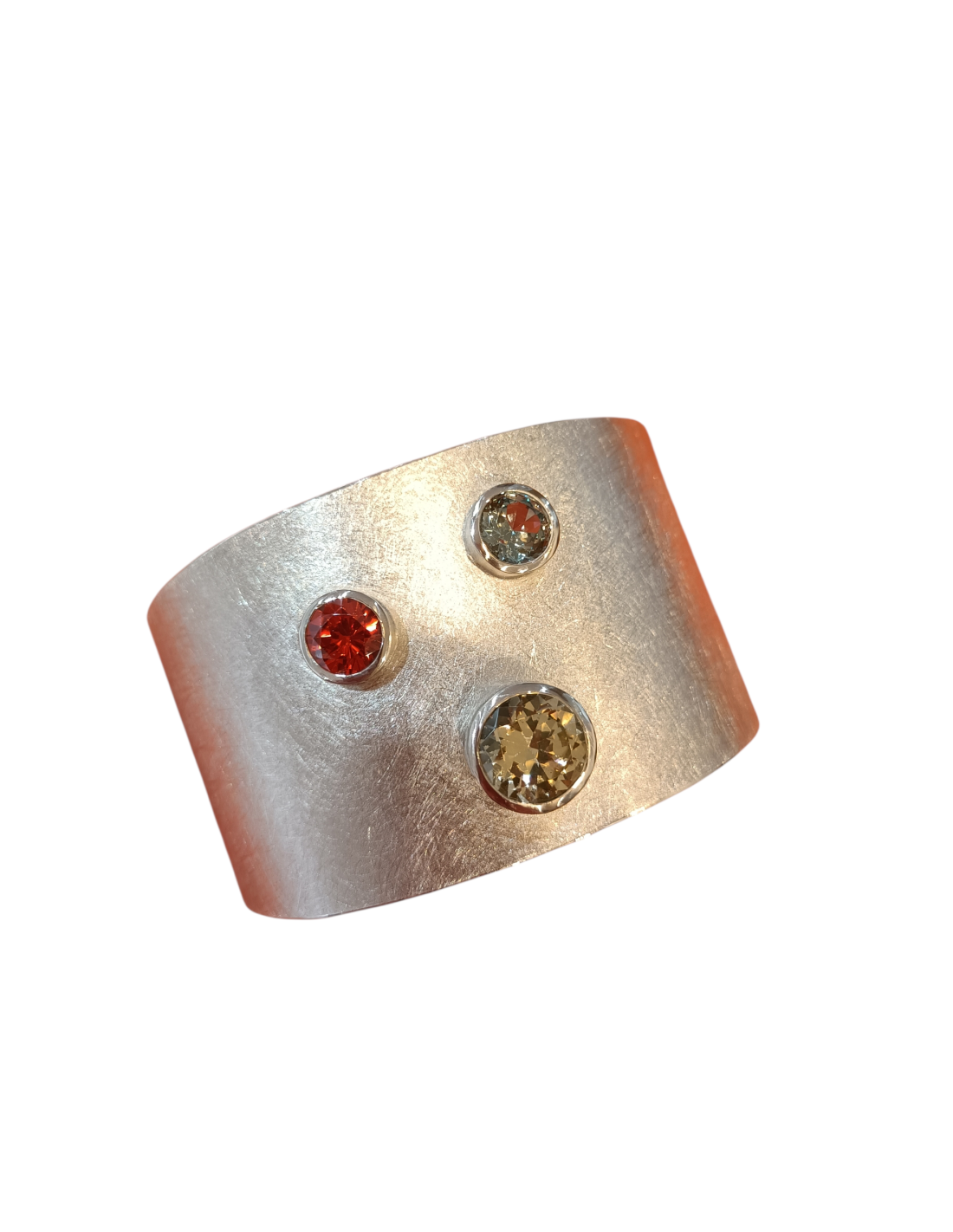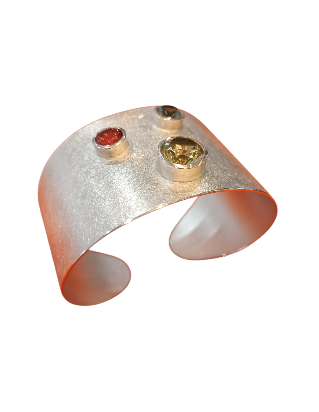Esclava de plata Vulcano realizada en plata de ley con piedras corindón color paparadsha, erinita y lemón