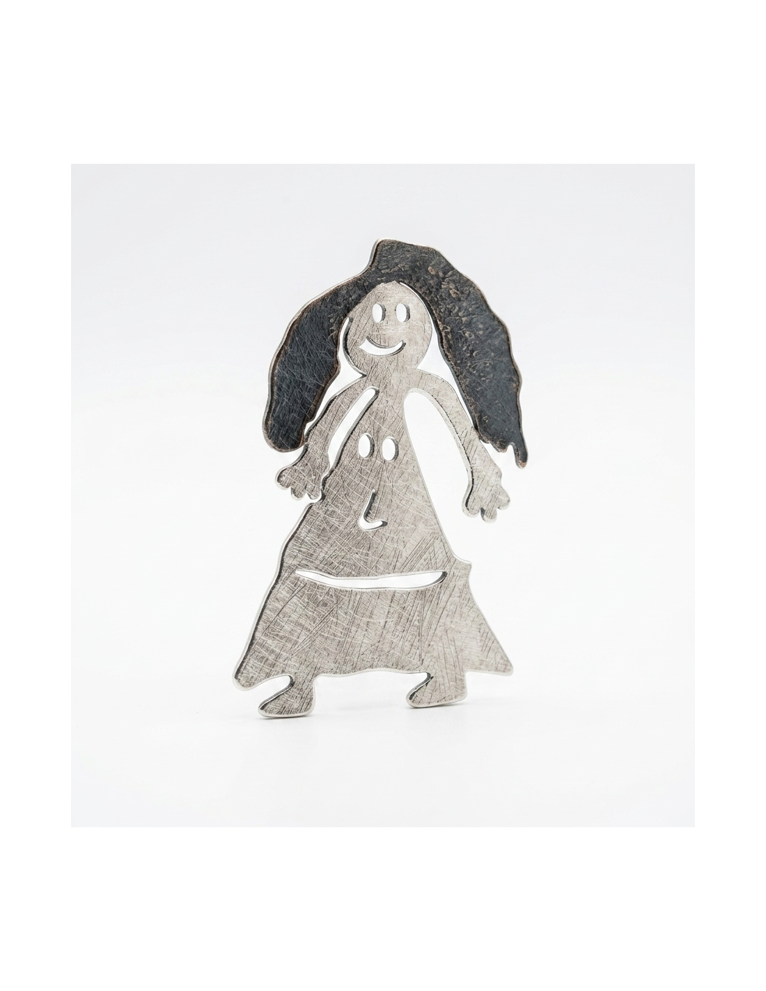 Broche "Dibujo Niña" hecho en plata 925 matizada y patinada